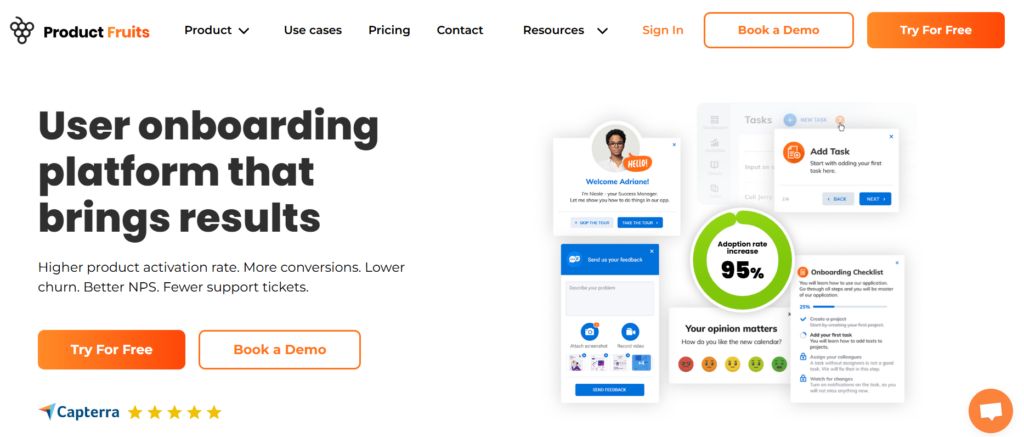 Consider using an all-in-one platform like Product Fruits to support your growth. It includes everything you need, such as onboarding, in-app guidance, real-time feedback, and NPS surveys, all in one place.