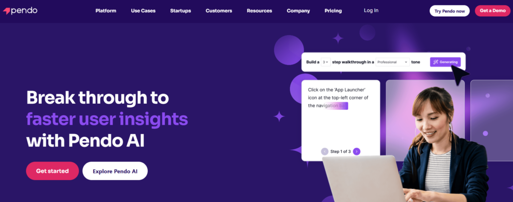 Pendo is a product adoption platform that helps teams track how people use their products, analyze user behavior, and create in-app guides. Pendo also allows you to survey users, group customers, and monitor the number of site visitors or monthly active users (MAUs) for your web app.