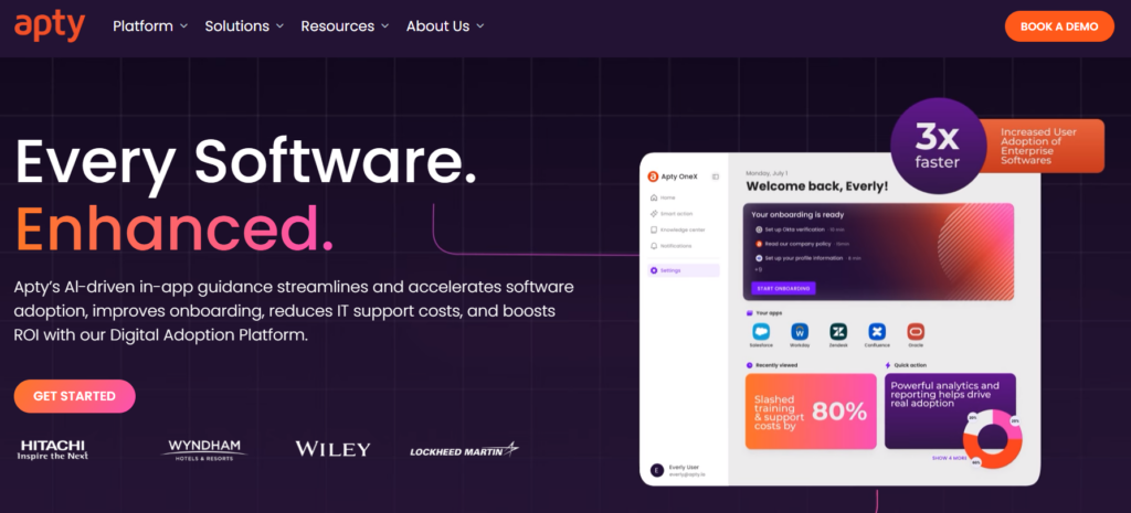 Apty is a cloud-based platform for onboarding users. It provides tools for in-app guidance, analytics, and automation, allowing companies to get the most out of their software.