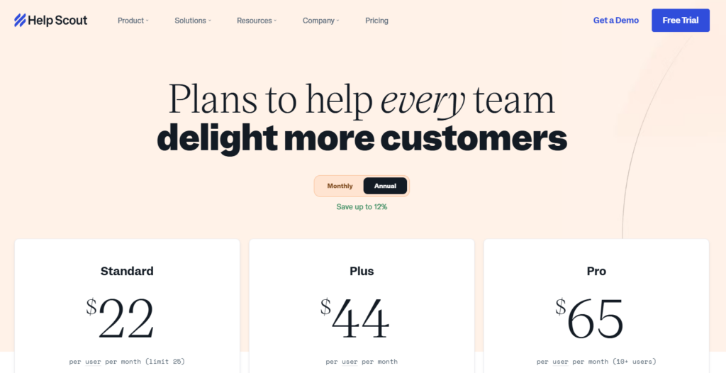 Help Scout has three pricing plans and offers a free trial.