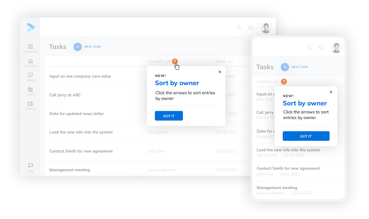 Thanks to in-app messaging, Product Fruits can help you guide users effectively with hints and tooltips. A well-timed popup might nudge users toward exploring advanced features, increasing engagement and satisfaction.