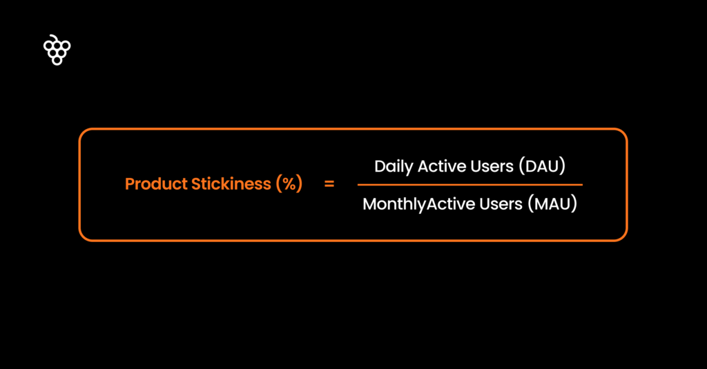 Product stickiness is the ratio of daily active users to monthly active users.