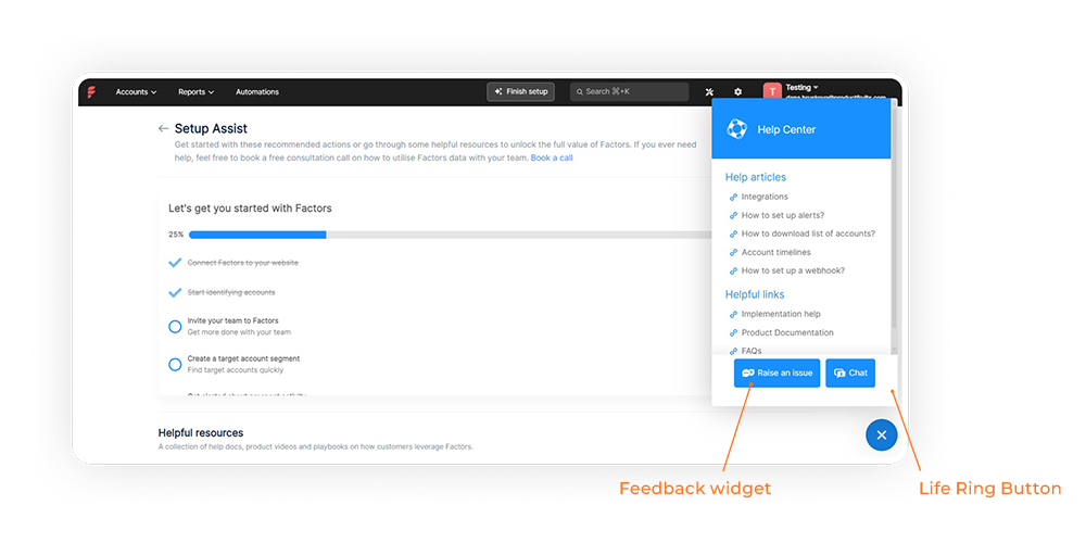 Product Fruits supports a knowledge base where you can upload support resources like product documentation, how-to guides, or video tutorials. Users can access it from the Life Ring button on the user interface, along with checklists and other onboarding resources.