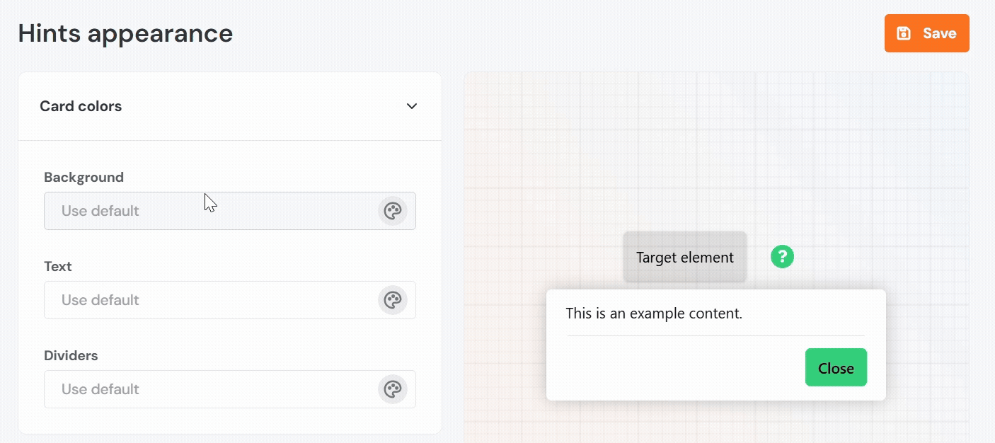 - Background: Sets the color of the hint card.
