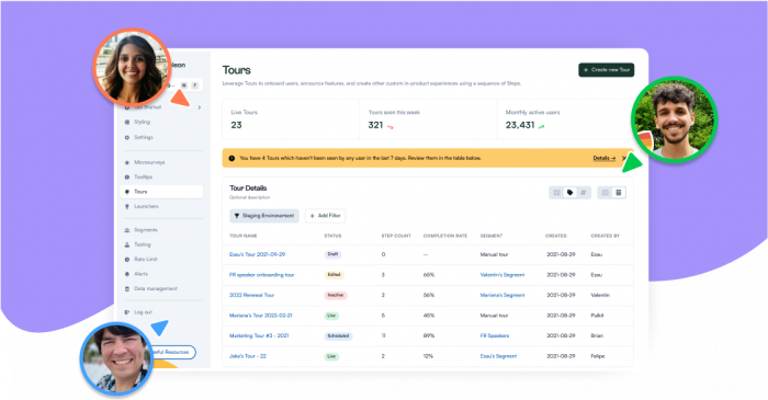 Create Custom Segments— Use custom segments to create targeted onboarding flows. This allows tours to adapt to users' needs over time.