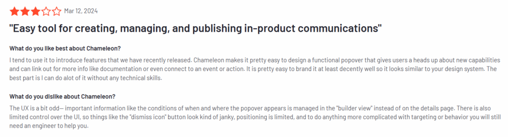 Chameleon’s main advantage is its flexibility in creating user onboarding flows, tooltips, and surveys. It provides robust customization options for complex SaaS products. It’s also an excellent choice for teams that need control over user experiences and want to build targeted product tours based on user behavior.