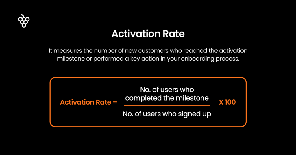 You calculate it by dividing the number of activated users by the number of new sign-ups and multiplying by 100.