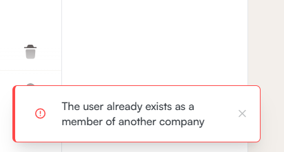 While inviting team members to your workspace, you may receive an error message that the user you are inviting already belongs to another company.