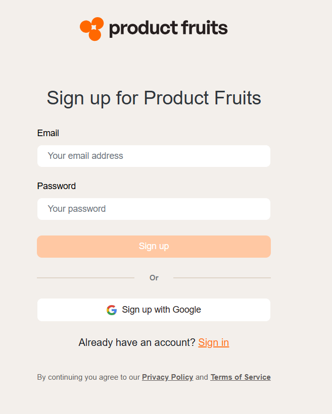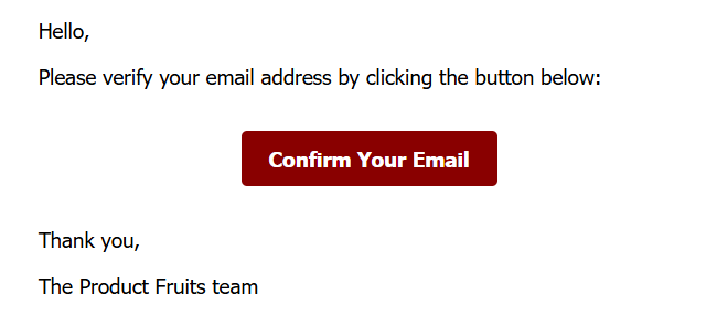 Once signed up, you’ll need to confirm your email address by clicking on the link sent to your inbox in order to start exploring Product Fruits.