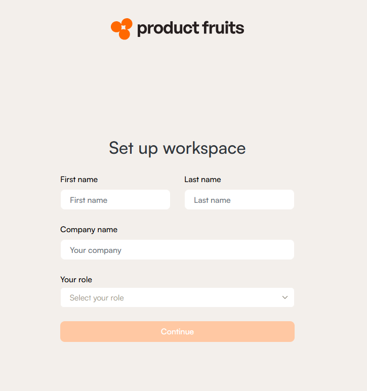 Before diving into creating onboarding content, you’ll need to set up your first workspace by filling in a few details about your company and product. A workspace is best thought of a container for all of the onboarding content related to an environment ('development' or 'production' perhaps) of an application.
