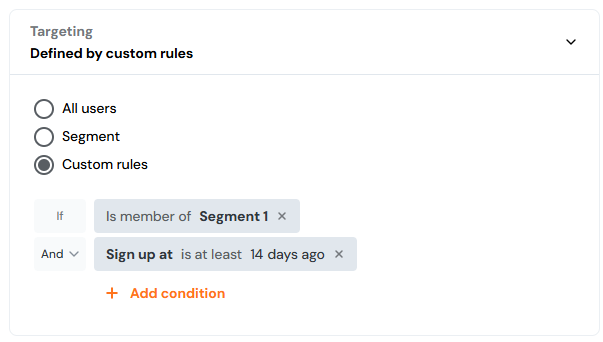 There are two key ways to apply segmentation in Product Fruits: User Segments and Targeting.